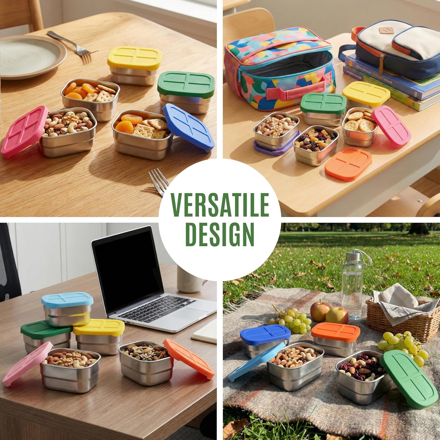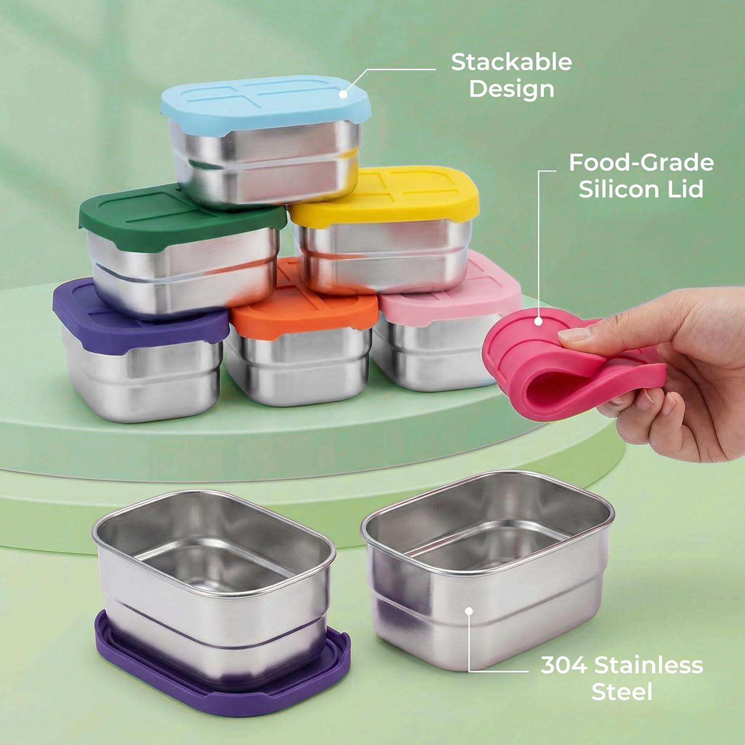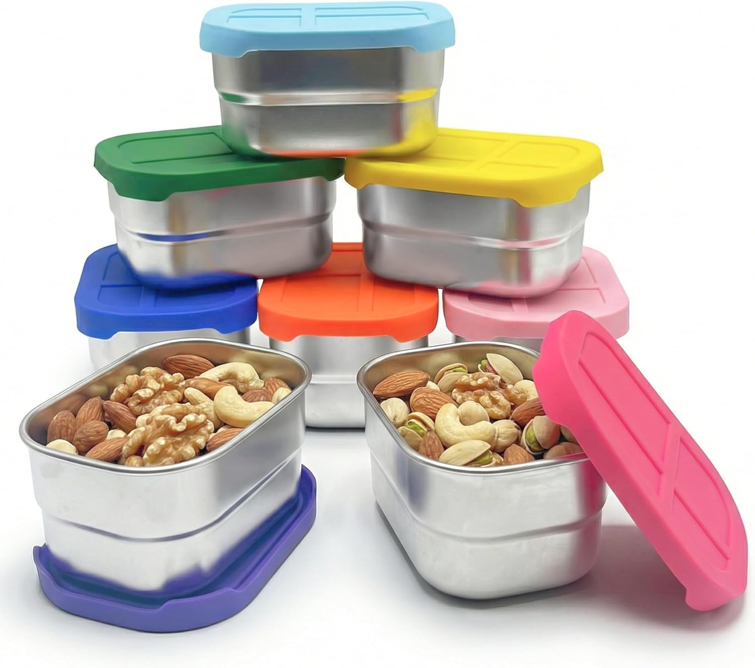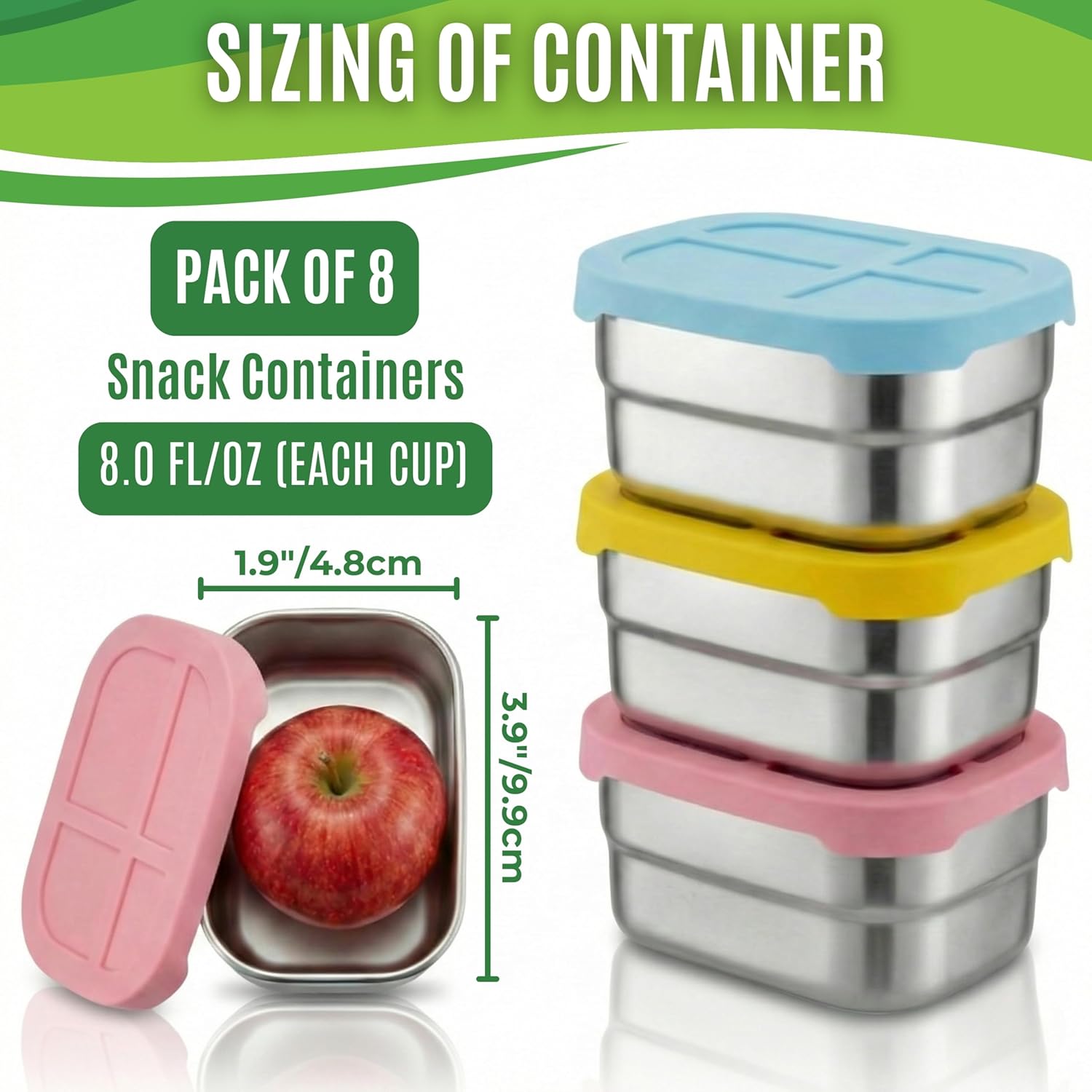 8 oz Stainless Steel Snack Containers with Silicone Lids, BPA-Free & Reusable Mini Food Storage Boxes for Snacks, Fruit, Sauces & Yogurt – Dishwasher Safe, Lunch & Travel (8-Pack)