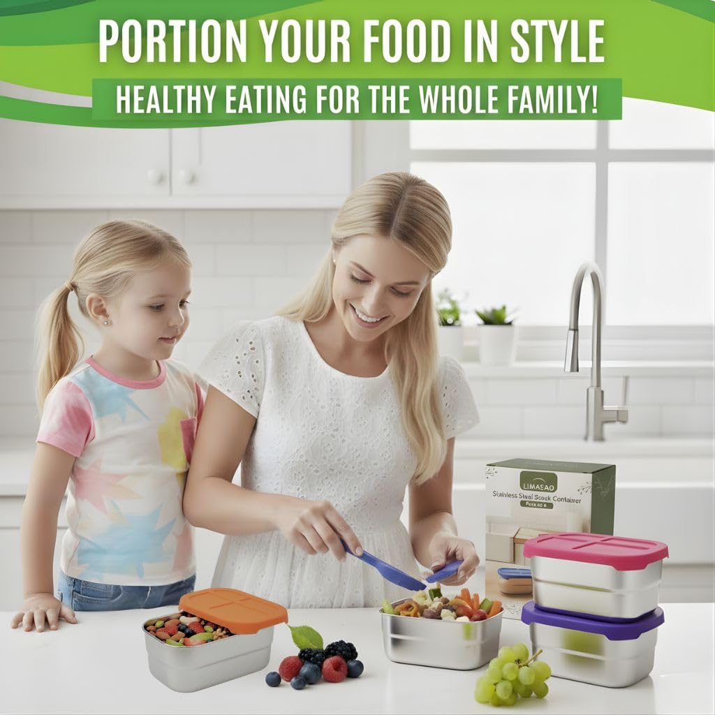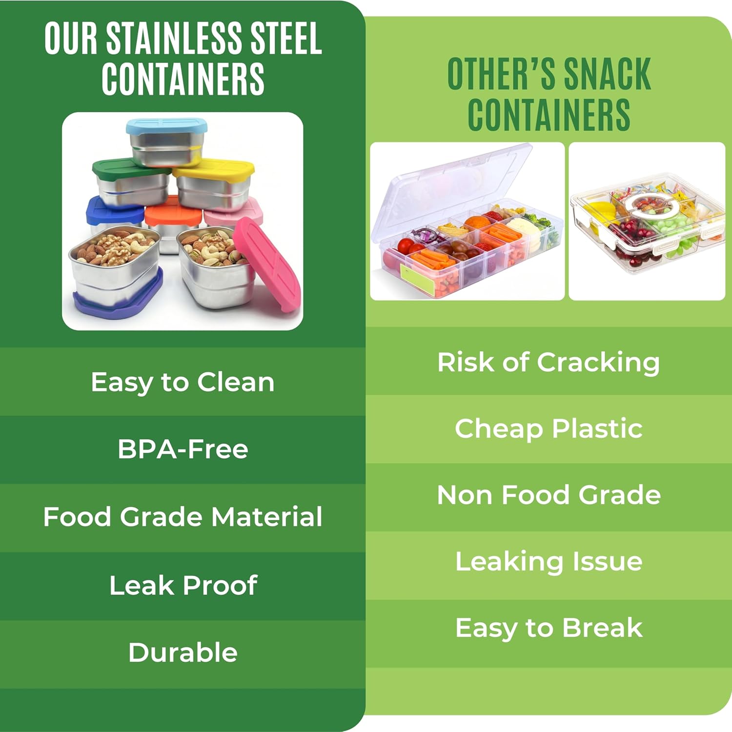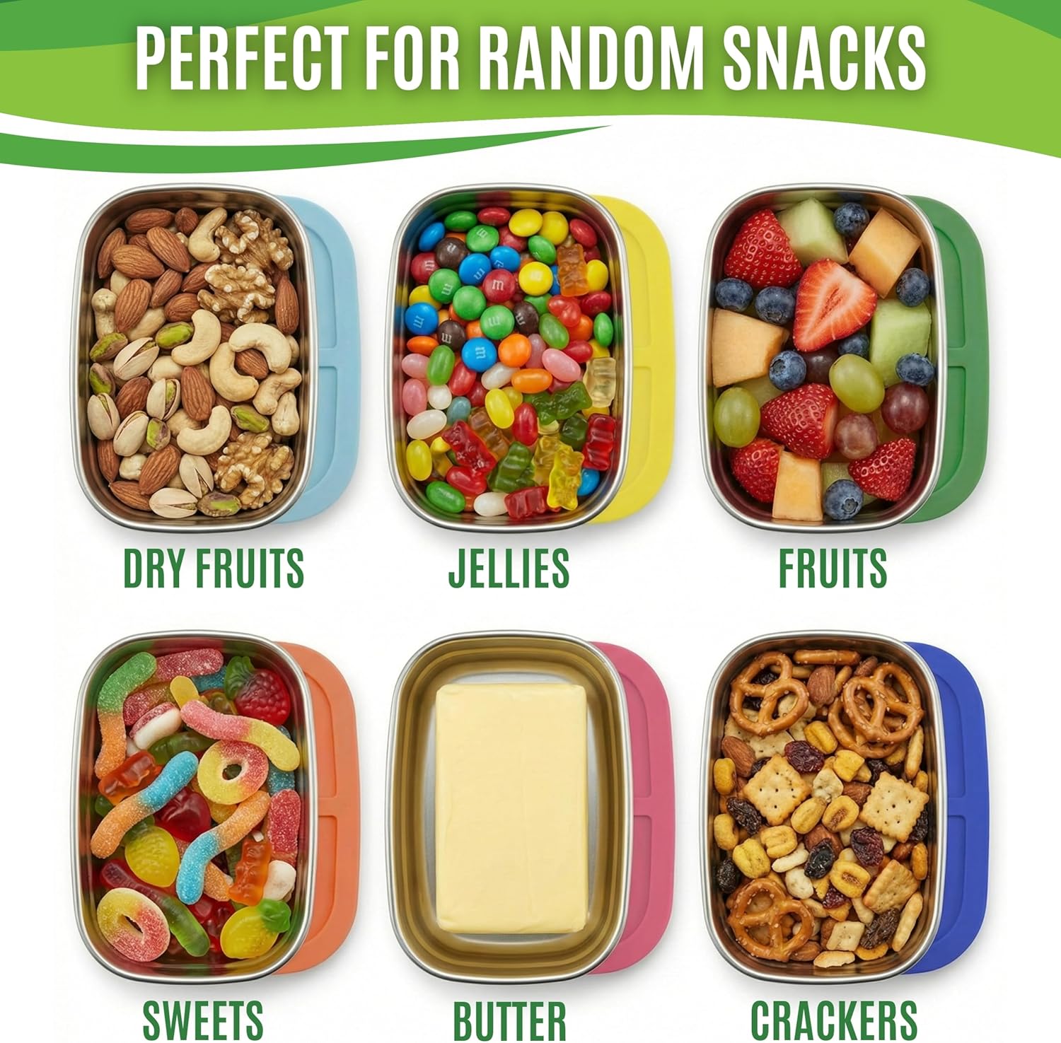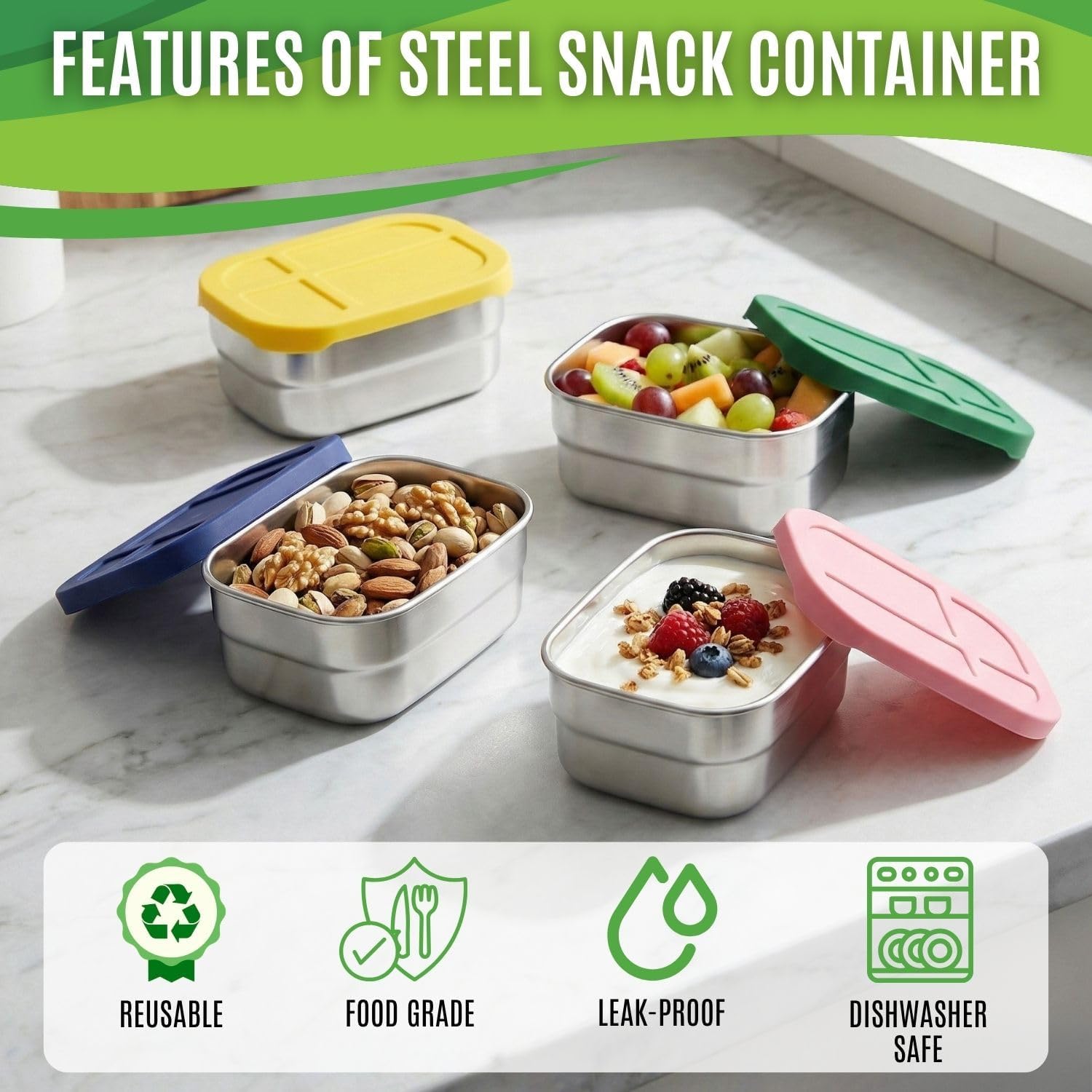 8 oz Stainless Steel Snack Containers with Silicone Lids, BPA-Free & Reusable Mini Food Storage Boxes for Snacks, Fruit, Sauces & Yogurt – Dishwasher Safe, Lunch & Travel (8-Pack)