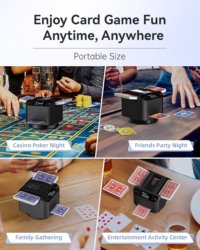 Automatic Card Shuffler and Dealer 2-in-1, 2 Deck 360° Rotating Dealing Machine for 12 Players, 4 Drawing Remotes, Rechargeable Playing Card Shuffler Machine for UNO, Poker, Phase 10