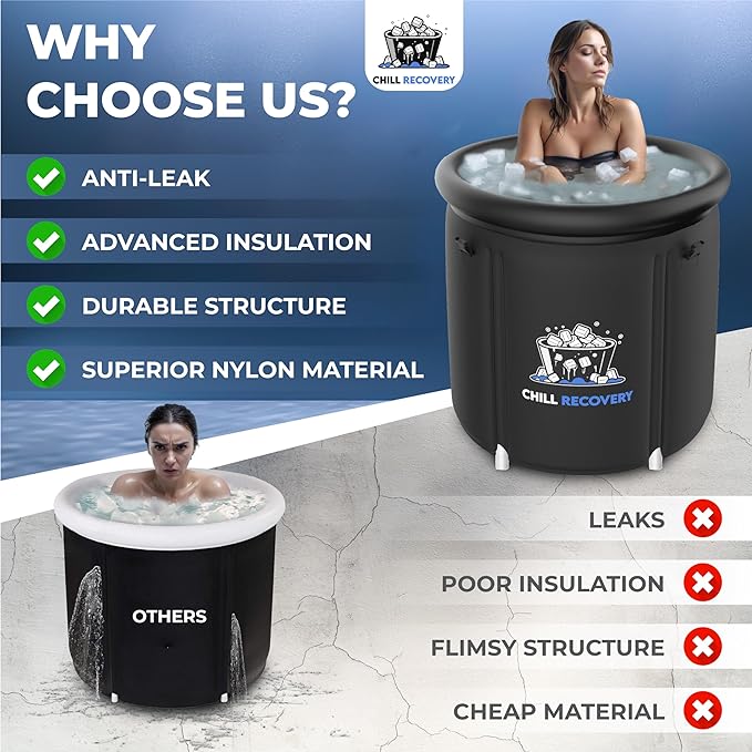 Cold Plunge Tub with Water Chiller – 85 Gallon Ice Bath Tub for Athletes, Portable Ice Pod Cold Plunge Tub with Bag, Multi-Layered Cold Tub for Outdoors & Indoor Use, Ice Baths at Home.