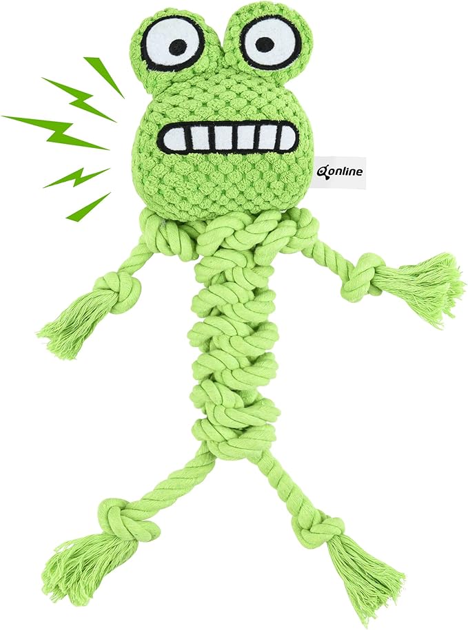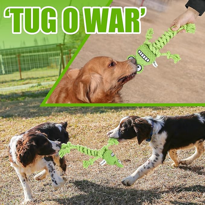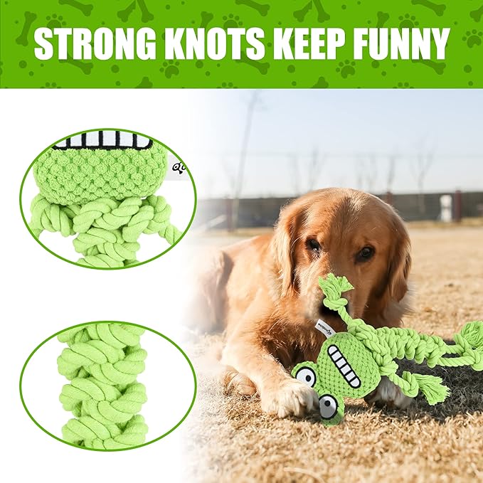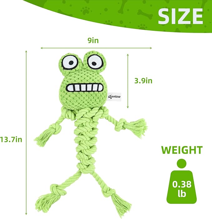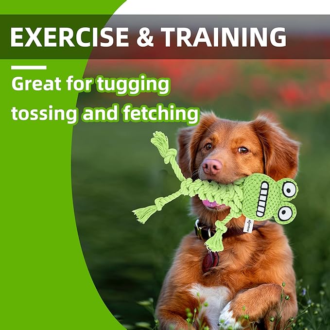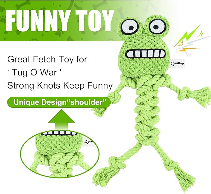 Green Frog Dog Toy, Stuffed Dog Toy, Cute Plush Head Squeaker Toy, Dog Rope Toy,Fetch and Tug Toy for Small Medium Dogs,Green